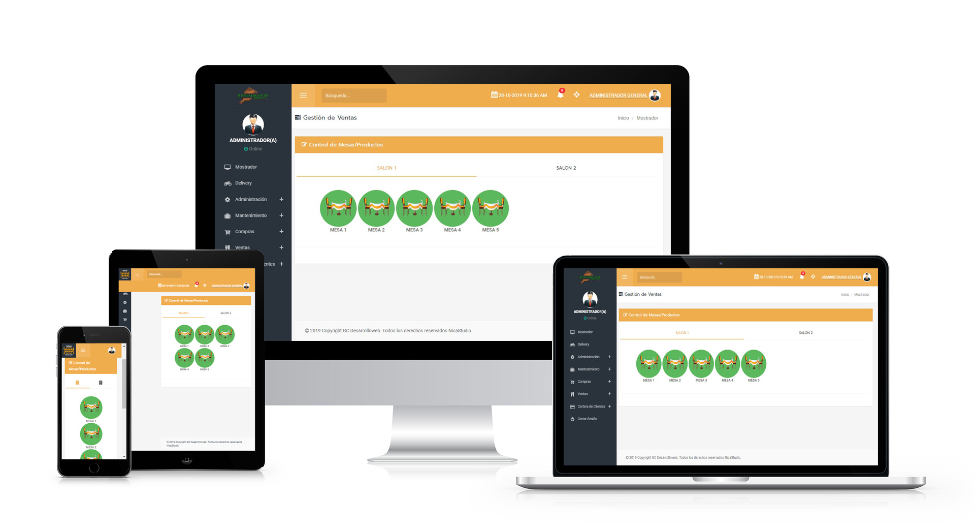 Sistema para restaurante o comidas rápidas. Delivery Panel administrativo amigable al usuario Venta rápida Reserva online Control de caja Control de usuarios Control de empleados Cierre y apertura de caja chica Inventario Reportes Informes diarios, mensual, anuales Compras Proveedores Tickets Facturación Nota de venta Débito Crédito Gráficos estadísticos